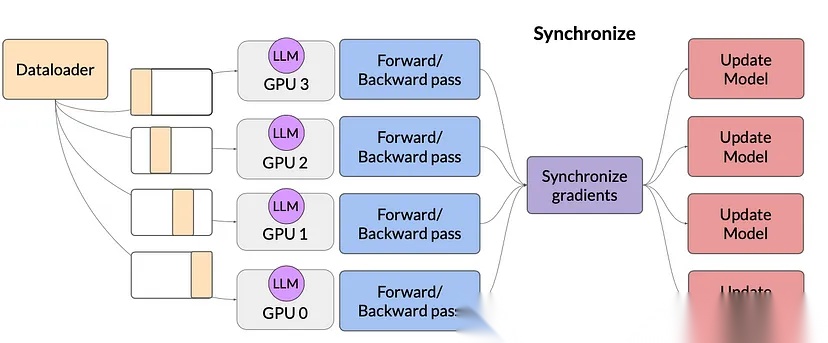 全分片数据并行(FSDP)通过在多个GPU之间分布(分片)模型参数、梯度和优化器状态来减少内存使用。