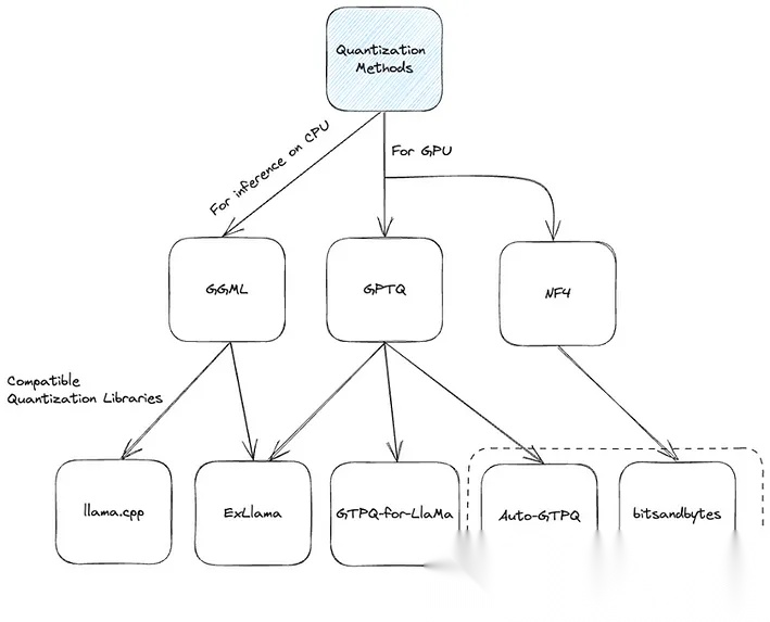 - GPTQ:有一些实现选项,如AutoGPTQ、ExLlama和GPTQ - for - LLaMa,这种方法主要侧重于GPU执行。