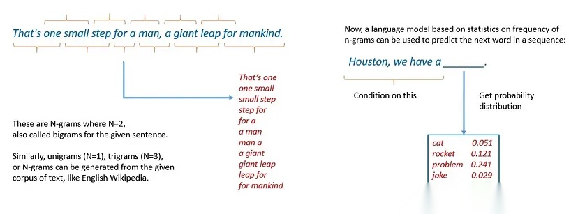 构建语言模型的最早方法之一是基于n - gram。n - gram是从给定文本样本中连续的n个项目组成的序列。在这里,模型假设序列中下一个单词的概率仅取决于前面固定数量的单词: