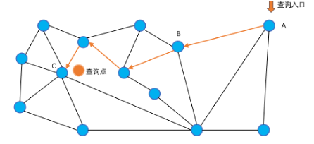 从客户的角度来看,内存开销可能并不是最重要的考量因素。他们更加关注的是应用的最终效果,也就是回答用户问题的速度和质量。导航小世界(NSW)算法正是这样一种用内存换取更快速度和更高质量的实现方式。这个算法的思路和“六度分割理论”类似——你和任何一个陌生人之间最多只隔六个人,也就是说,最多通过六个人你就能够认识任何一个陌生人。我们可以将人比作向量点,把搜索过程看作是从一个人找到另一个人的过程。在查询时,我们从一个选定的起始点A开始,然后找到与A相邻且最接近查询向量的点B,导航到B点,再次进行类似的判断,如此反复,直到找到一个点C,其所有相邻节点都没有比它更接近目标。最终这个点C便是我们要找的最相似的向量。