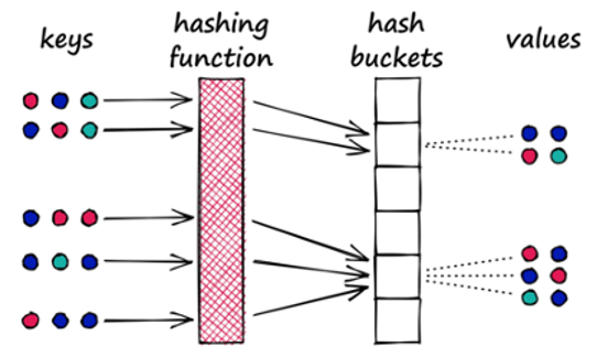 沿着缩小搜索范围的思路,位置敏感哈希算法是另外一种实现的策略。在传统的哈希算法中,我们通常希望每个输入对应一个唯一的输出值,并努力减少输出值的重复。然而,在位置敏感哈希算法中,我们的目标恰恰相反,我们需要增加输出值碰撞的概率。这种碰撞正是分组的关键,哈希值相同的向量将被分配到同一个组中,也就是同一个“桶”里。此外,这种哈希函数还需满足另一个条件:空间上距离较近的向量更有可能被分入同一个桶。这样在进行搜索时,只需获取目标向量的哈希值,找到相应的桶,并在该桶内进行搜索即可。