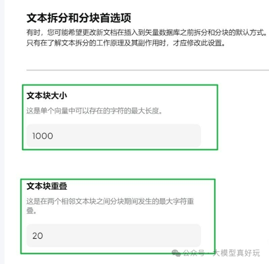 下图是AnythingLLM中的块大小设置和重叠部分大小设置的界面: