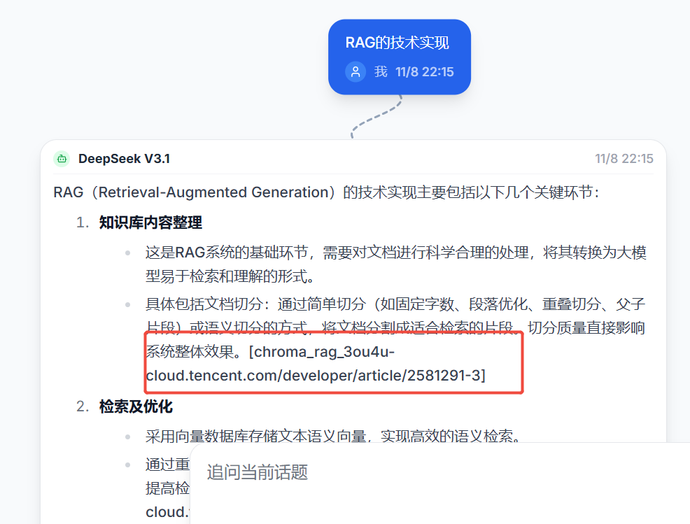 智能检索结果的准确性是对用户感知最大的,也是最直接的。整个流程也比较复杂,包括:查询预处理 → 查询扩展 → 向量化 → 相似度检索 → 重排序 → 构建上下文 → LLM生成答案 → 返回答案+引用。