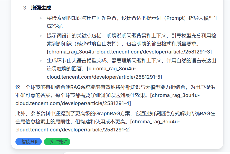 文本分块策略要采用智能分块,比如:使用使用 LangChain 的RecursiveCharacterTextSplitter。智能分析内容并优化拆分逻辑,可过滤冗余信息并保持语义完整性。不要采用按句子直接拆分。