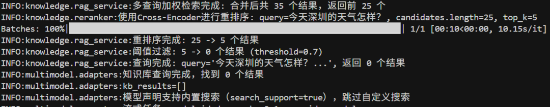 很明显,这个问题RAG是无法回答的,直接调用联网搜索结果。