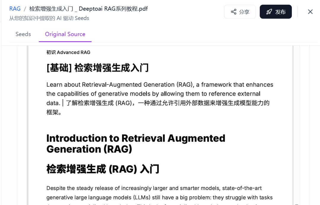 我将文本分块的结果生成知识种子(什么是知识种子,后续会讲到)。通过知识种子,可以对文本分块的结果进行优化,包括对分块的结果进行增、删、改。