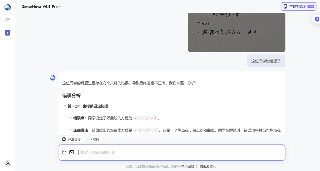 面对学生作业答疑需求,教师可借助“商量”模型的拍照讲题功能高效处理:拍摄学生手写试卷或练习题,AI能精准识别答案并完成判题,还会针对错题生成“引导式提问”拆解思路。既能辅助学生自主纠错,更帮教师减少重复讲解的工作量,让课后辅导更轻松。
