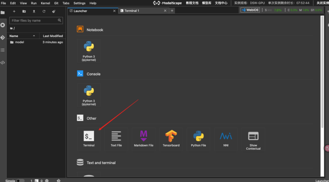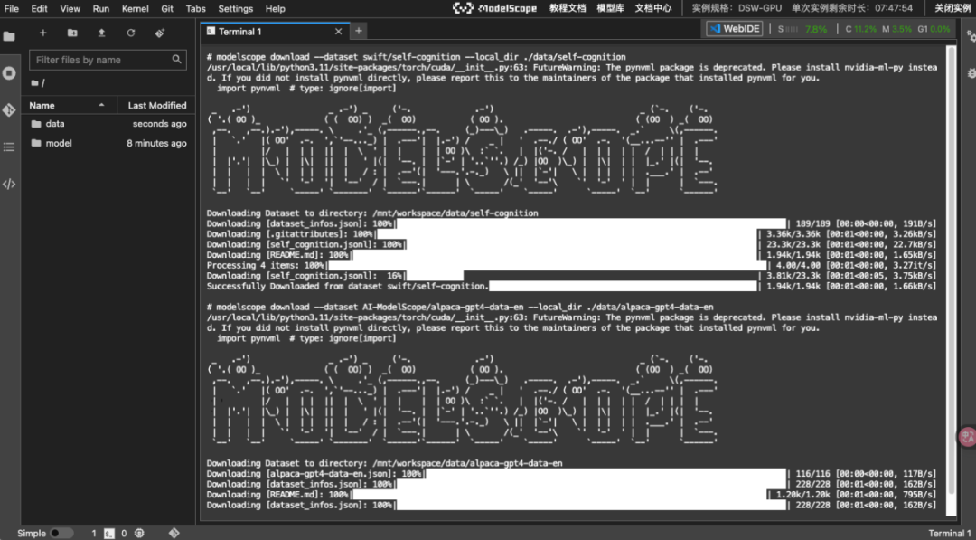 以上我都没有,所以使用ModelScope提供的免费GPU资源。