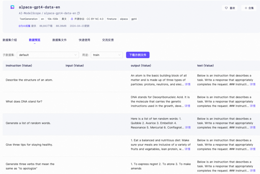 alpaca是基于Meta开源的LLaMA模型构建的一种微调数据集格式,特别适用于 instruction-tuning,即指令微调。其数据格式的特点是提供了一个明确的任务描述(instruction)、输入(input)和输出(output)三部分。system作为系统提示词,可选。