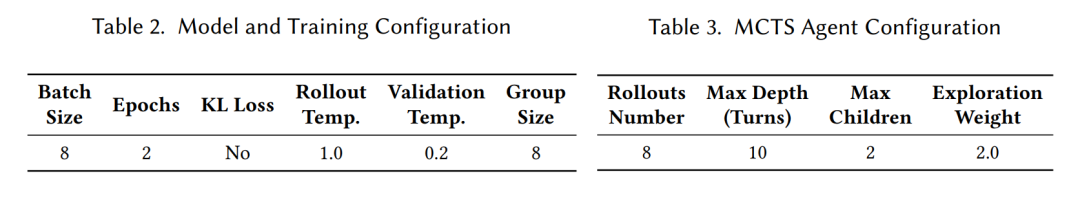 研究团队使用 veRL 框架和 GRPO 算法实现了 RepoSearch-R1。表 2 和表 3 总结了实验中使用的关键超参数和配置。对于 MCTS 算法,通常需要进行多轮采样以探索更有效的检索策略。然而,为确保在本研究中与 Search-R1 进行公平比较,将 MCTS rollout限制为八次 ,每个问题最多生成八条智能体执行轨迹。采用LLM-as-a-judge进行评分,使用Qwen3-Coder-480B-A35B-Instruct作为 LLM 评判模型 。
