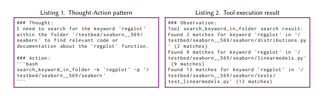 图2:与代码库进行多轮交互的示例,展示了“思考-动作-观察”模式。