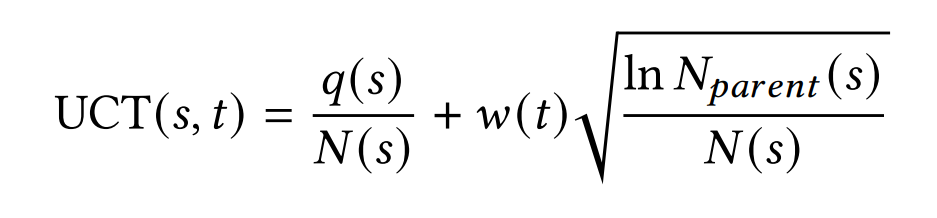 1)选择:使用UCT(Upper Confidence Bound for Trees)策略选择有潜力的节点。