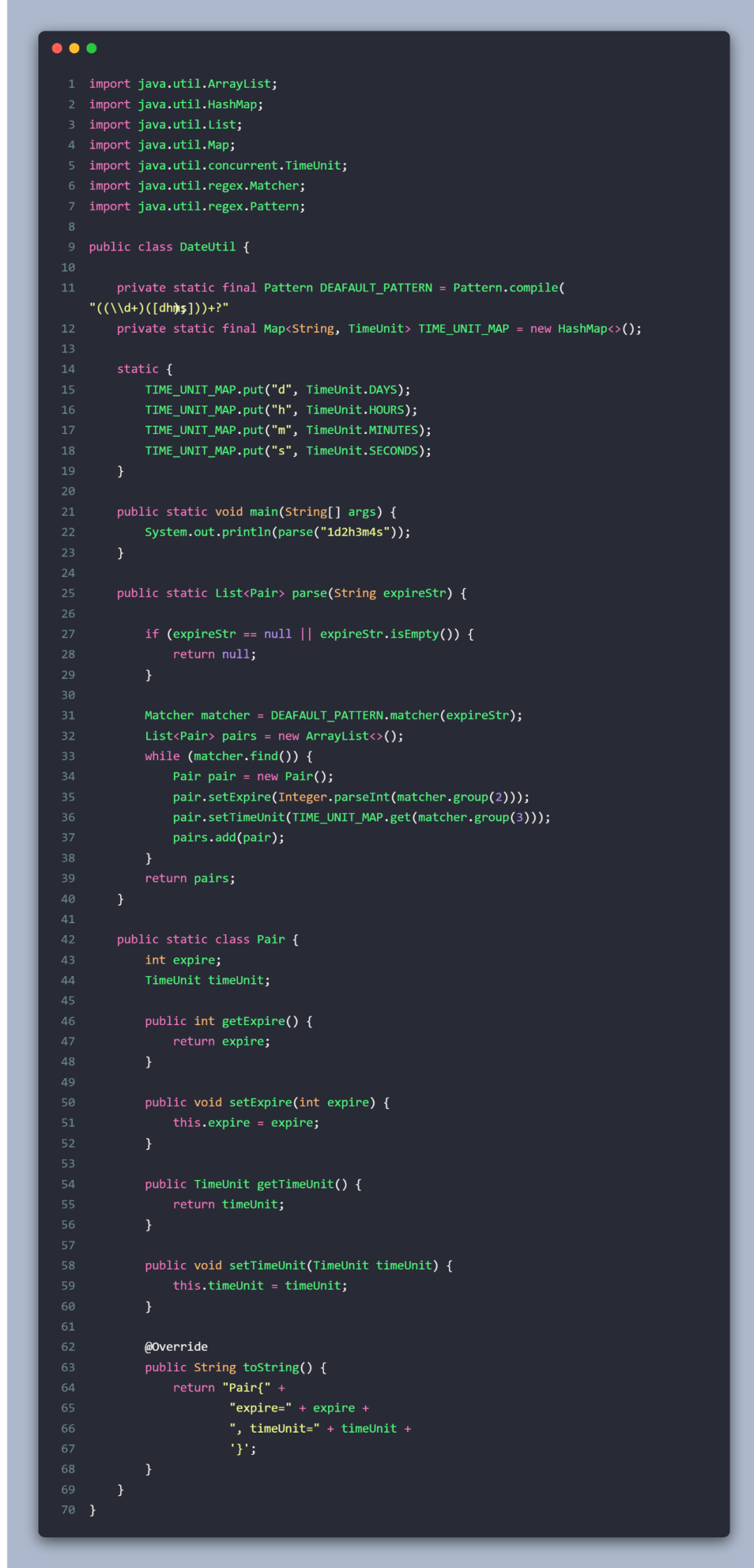 然后需要定义一个解析的方法,能解析出数字和单位。当然,分别给出 Java8之前和之后的实现。因为本人觉得使用 Java8新增的 API时间更简洁和易理解。