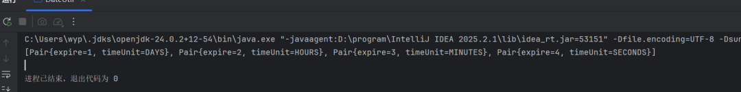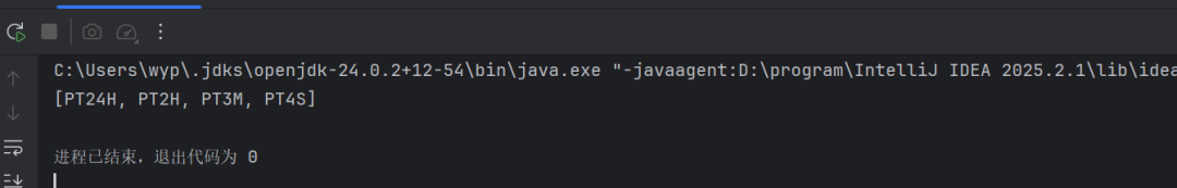上述结果也好理解, PT24H表示24小时,也即一天,PT2H表示2小时,PT3M表示3分钟,PT4S 表示4秒。这属于Duration的解析格式。当然,这里无需在意,毕竟只是用 Duration 接收解析结果而已。