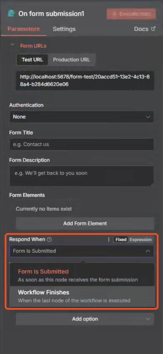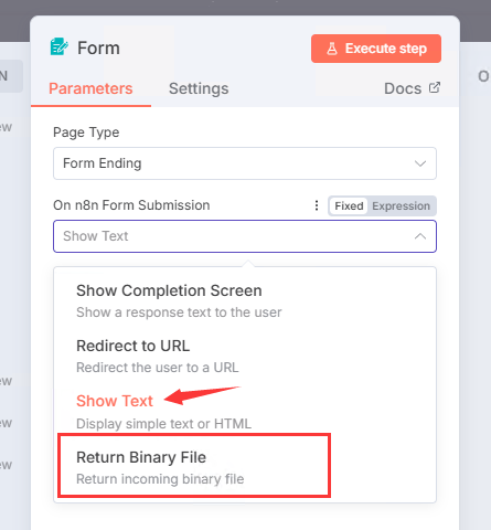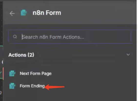 节点库搜索 n8n form,然后选择 Form Ending,拖拽进工作流中。