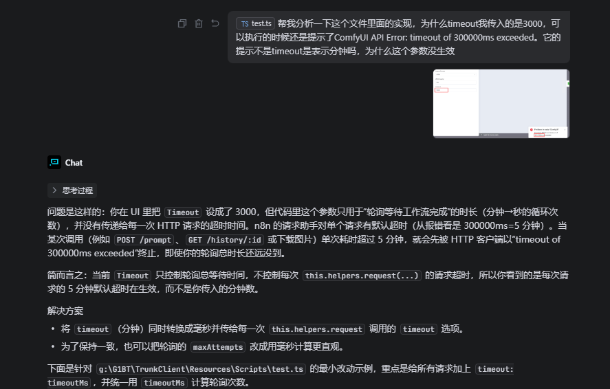 如果不是编程人员看不懂代码,也没关系,可以把这整个文件的代码复制一份,然后保存到你本地,比如我就叫 test.ts 吧,然后把这个文件发给 AI,让它帮你分析一下问题,看为什么参数没有生效。