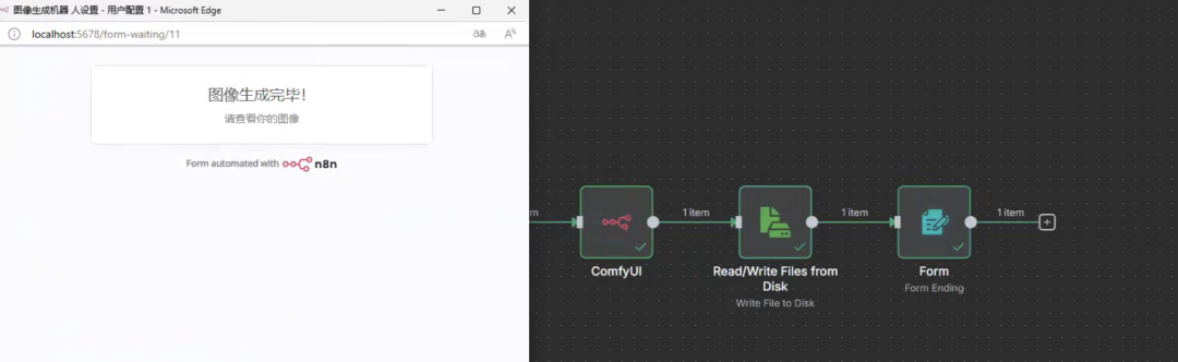 但是之前我们在填写表单的时候,后面的节点都还没执行,就提示已经完成了,这有点不符合常理,正常应该是图片生成且保存到我们本地了才提示完成。