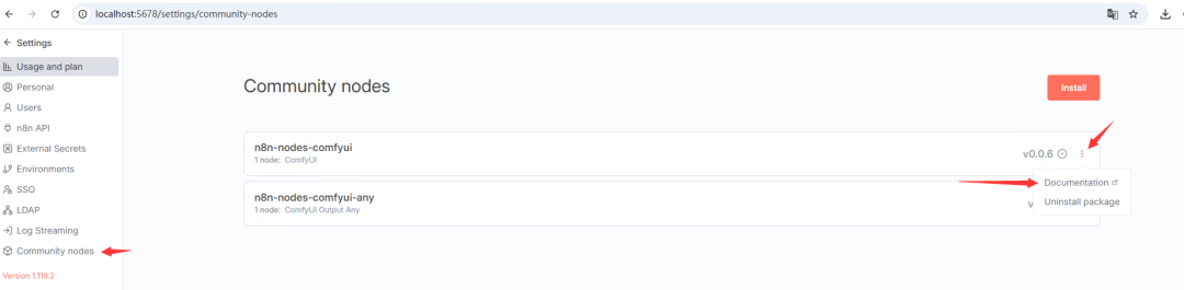 首先,去到 n8n 设置里面的社区节点里找到使用节点的官方文档
