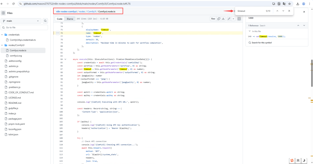 经过一番查找,在代码仓库的如下目录我找到了处理界面上超时节点的处理逻辑:输入关键字 timeout,网页就会把代码里面所有有关 timeout 的代码都用黄色标注出来。