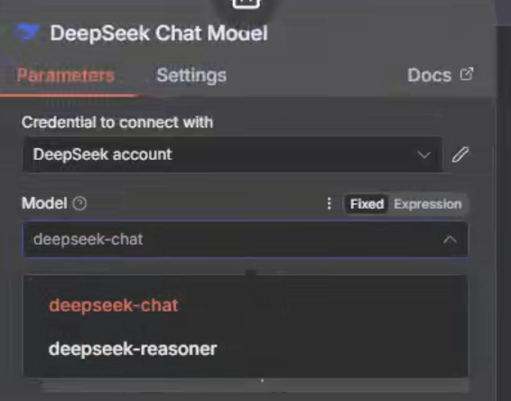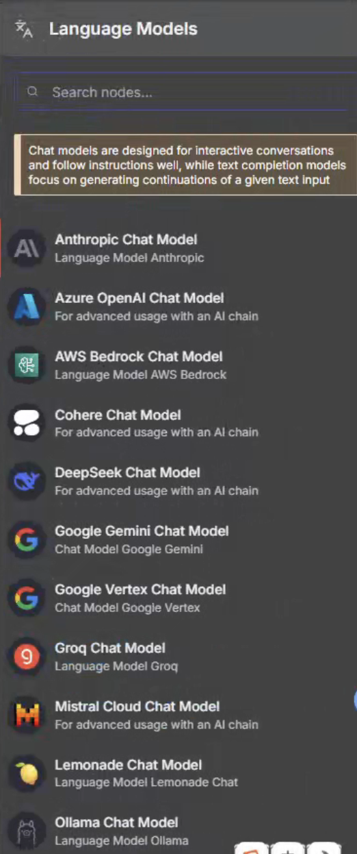首先,我们需要在 chat model 这个子节点选择一个大模型。