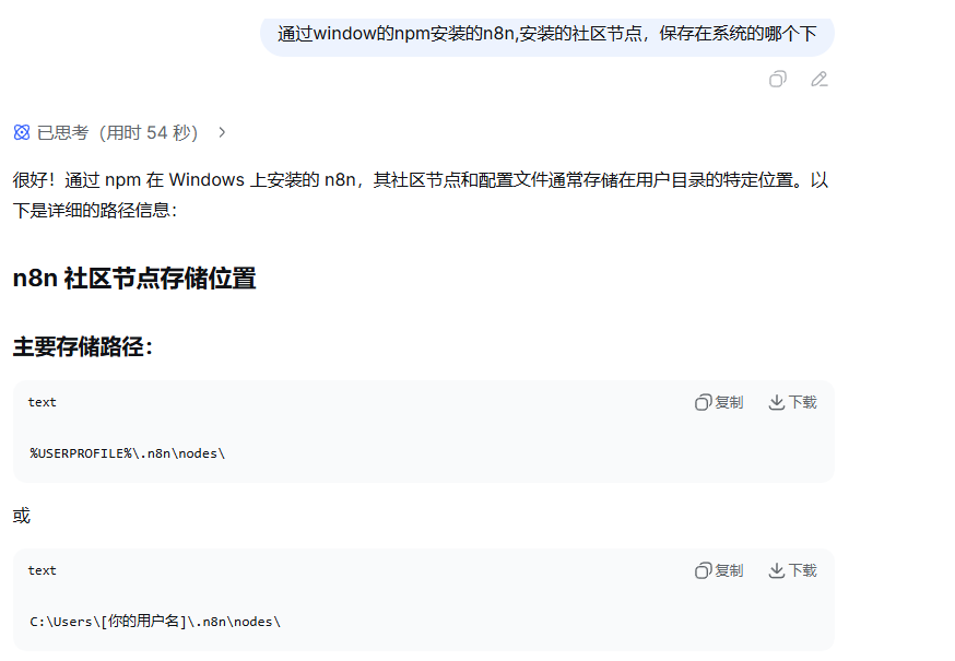 ok,知道怎么改了,但是我到哪去修改这个文件呢?毕竟我是通过社区节点直接安装的,也不知道它安装到哪个目录了,别慌,我们可以继续问下 AI。