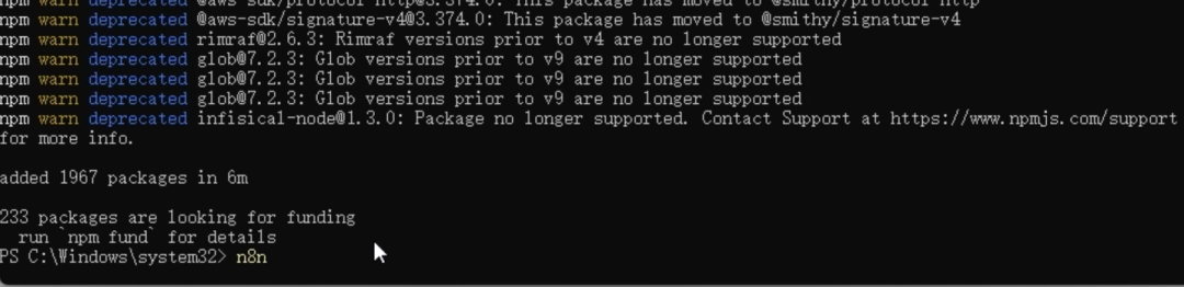 安装 n8n 之前需要先安装 node.js,且官方文档说 n8n 本地部署需要 node.js 大于 20.19 版本。