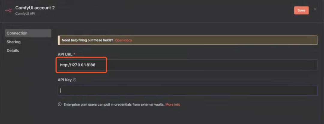 所以配置这个 comfyui 节点的配置也比较简单,把这个 url 填进去就可以了,api key 可以不填,然后点击保存。