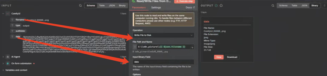 上一个节点生成的图片只能预览,还需要我们去手动下载,那肯定不行,一般我们会选择下载到本地磁盘,或者上传到网盘,发送到邮箱等,这里我就拿保存到磁盘举例了。