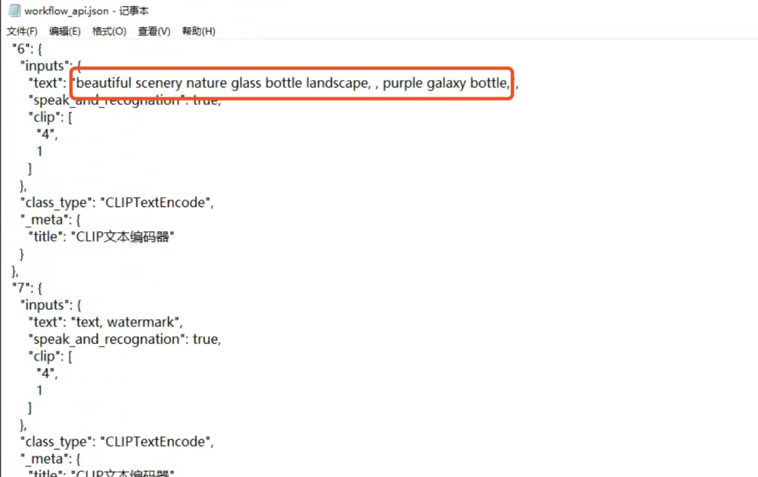 此时我们还需要再做一件事,点击箭头按钮,进行编辑,我们需要找到 comfyui 中正向提示词节点,修改它的内容,要不然每次执行都是用的下面这段固定的提示词,我们需要把表单提交的动态的内容传递给它。