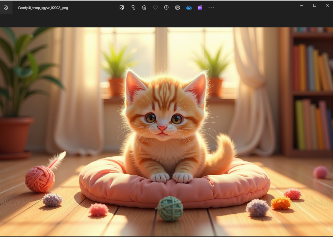 我们再重新输入提示词:一只可爱的猫咪,提交表单,等待个几分钟,图片就生成好了。