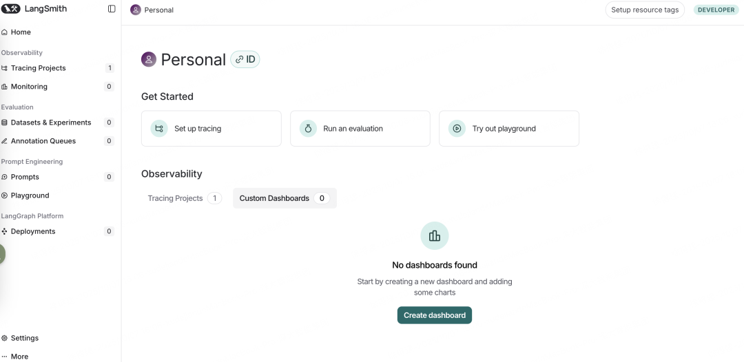 LangSmith作为LangChain生态体系中的一个独立的LLM应用开发运维平台,可以追踪、评测LLM应用。属于商业的SaaS平台,不过提供了免费的使用额度,5000/月条免费追踪日志权益。