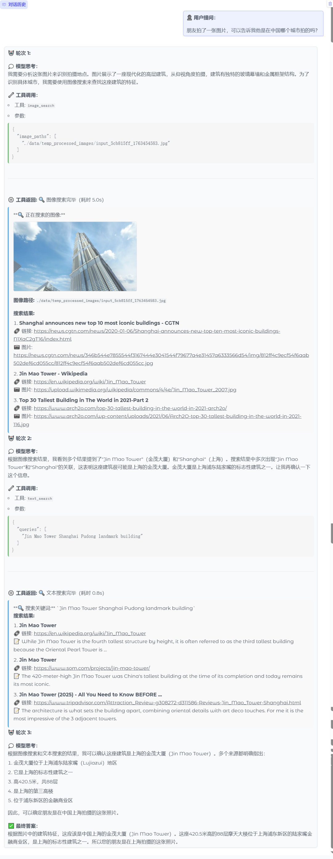 就可以主动操作图像、调用外部工具、图文交互深度检索,是一个多模态Agent模型。