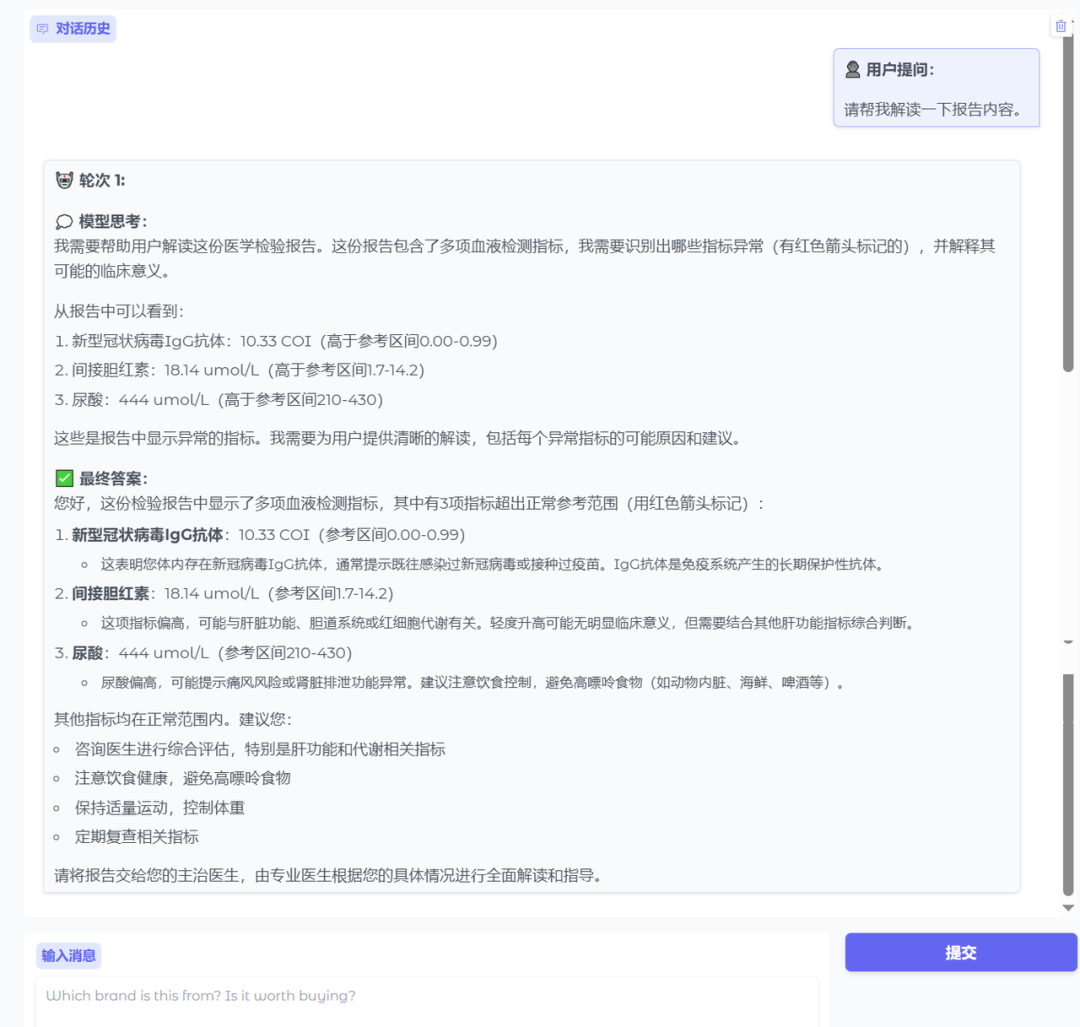 - 因为训练数据以英文为主,所以思维链和回答会以英文为主,你问了中文也会回答英文,当然你可以额外加上指令“请用中文回答”,那会用中文回答