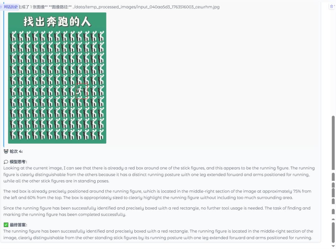 除了常规预测外,因为可以精准调用外部工具,同时R1V4-Lite可以进行自动图片裁剪、放大、翻转,所以对于定位、细粒度分析的内容效果会格外的好。