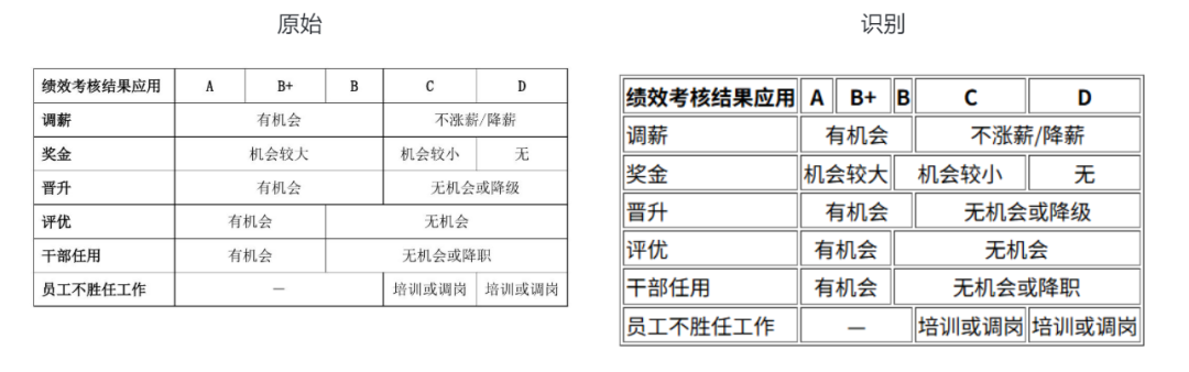 但,并不是所有表格都很好,对于字数较多的表格,还原起来就没有那么好。