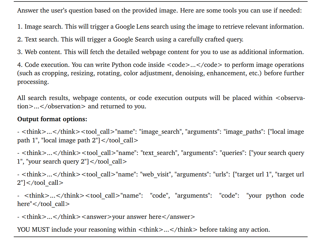 - 能力融合,随机抽取 3k 例 LiveVQA,用 Claude 写 先裁图→搜索→再裁图 的混合脚本,再用 VLM 自动丢弃错位裁剪等低质量样本,保证图像操作与搜索结果因果一致。