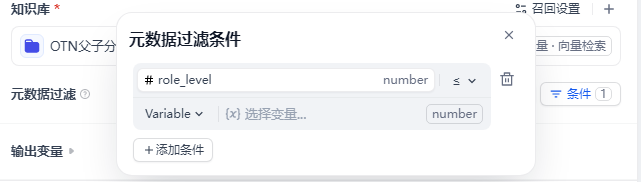 4、在知识检索节点增加元数据过滤,并使用≤条件过滤
