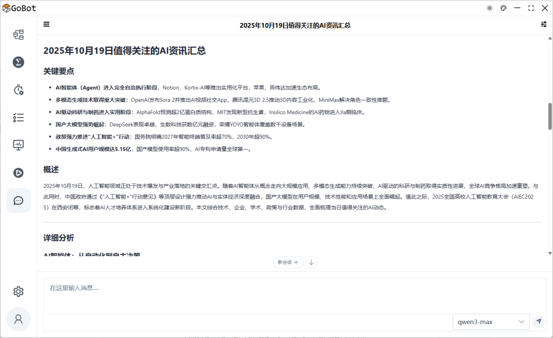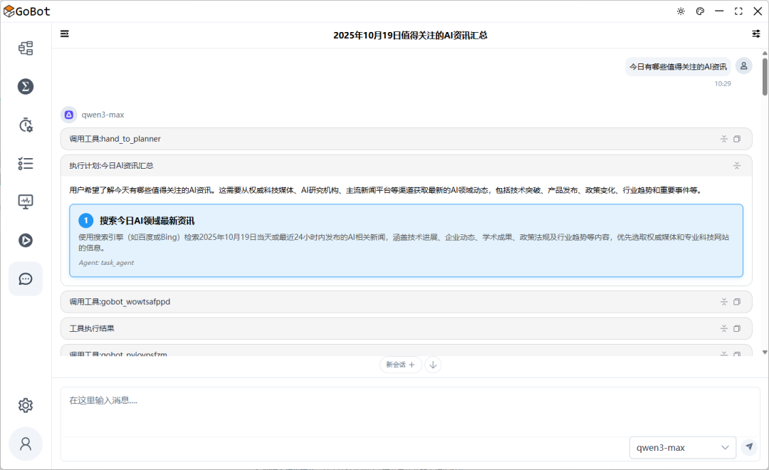 在当今快速发展的AI时代,如何让AI真正帮助我们完成各种复杂任务?GoBot的智能Agent系统给出了一个革命性的答案。这个系统不仅仅是一个编程工具,而是一个基于多Agent协作的智能任务助手,能够理解用户需求、制定执行计划,并通过整合各种工具(包括MCP协议和自定义RPA工作流)来完成用户的任务。