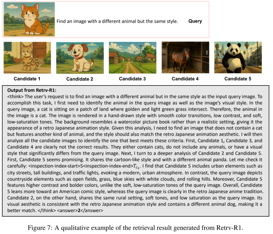这些失败让我们意识到:检索任务需要的“推理”,不是像数学题那样的复杂推导,而是“快速筛选-重点核查-精准匹配”的高效流程;同时,多模态候选的信息必须“瘦身”,但不能丢关键信息。而Retrv-R1恰好踩中了这两个关键点。