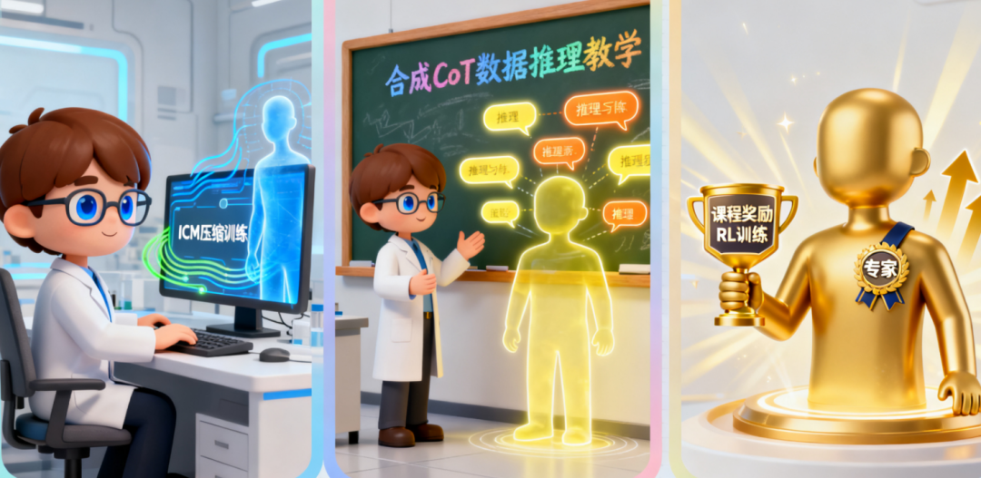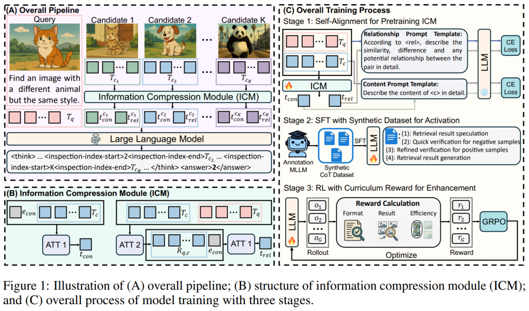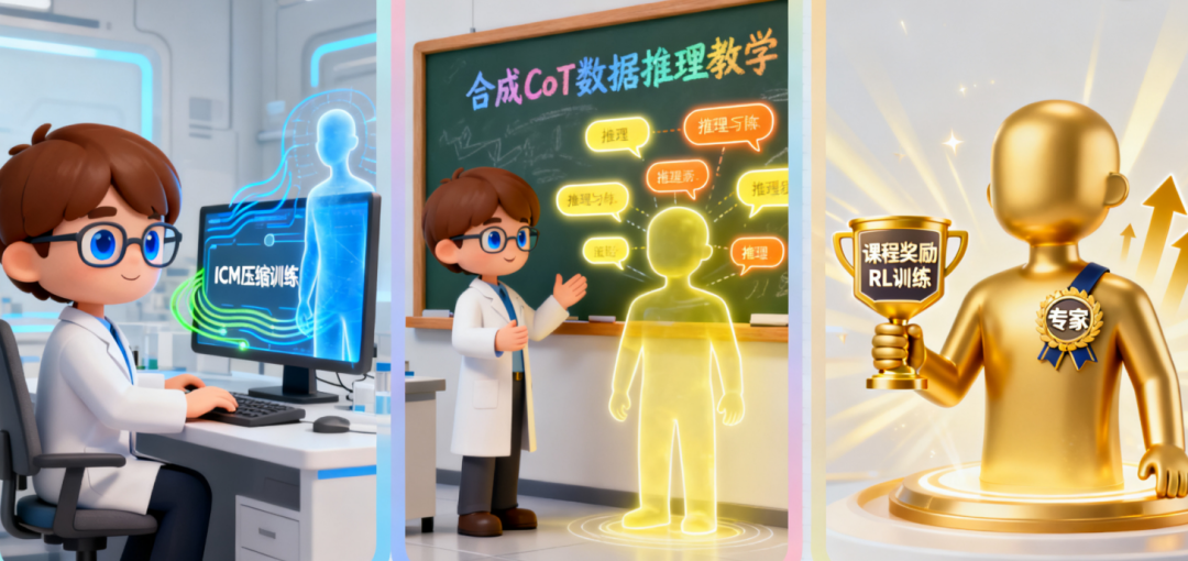 - • 阶段1:ICM预训练:先冻结MLLM,单独训练ICM的压缩能力,确保它能提炼出关键信息——这一步解决“信息冗余”的基础问题。