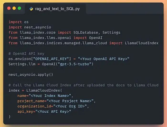 - 向量数据库——本智能体既要查 SQL 引擎,又要查向量数据库(RAG),因此需要存放文档。如果你嫌麻烦,直接用 LlamaCloud!创建索引、上传文档,一步到位,无需复杂配置。