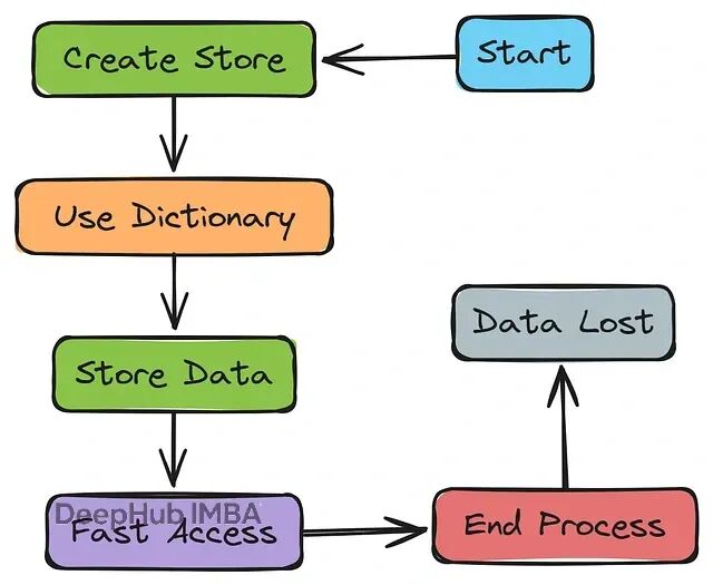 使用 from langgraph.store.memory import InMemoryStore 导入,创建一个完全在内存中运行的存储,使用标准 Python 字典。