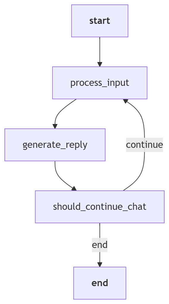 这个图清楚地展示了循环结构:generate_reply可以回到process_input。