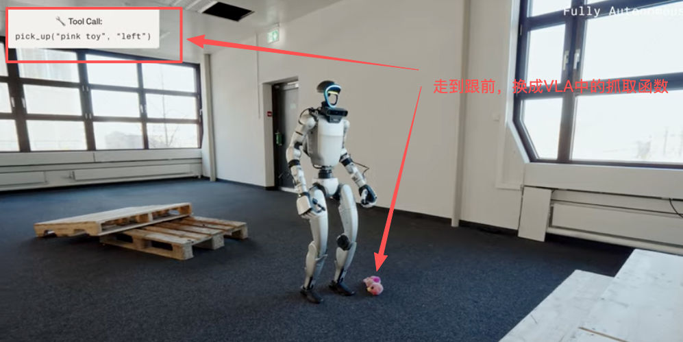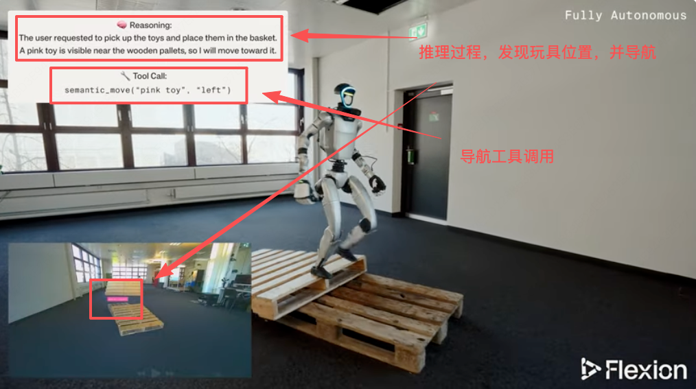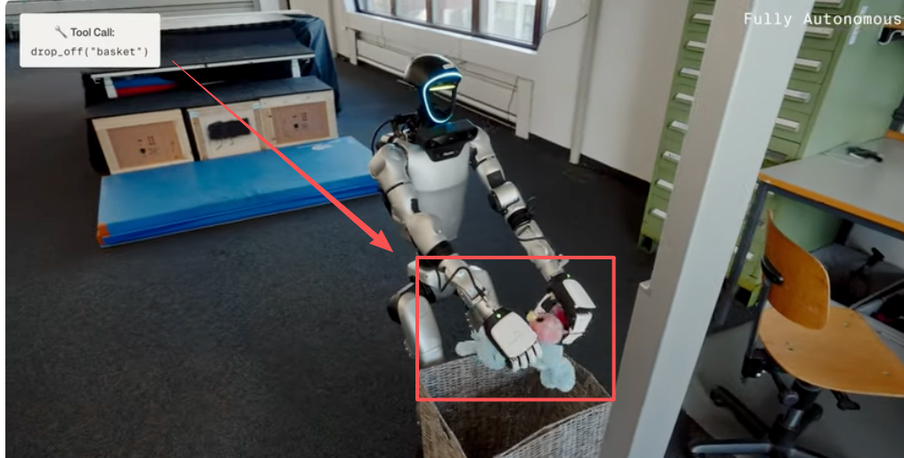 当收到 “捡起玩具并放入篮子” 这类用户指令时,Agent会将任务拆解为原子级动作,筛选适配的工具,并对这些动作进行连贯排序。