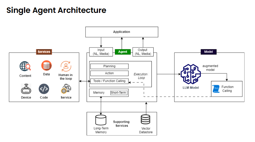 Agentic AI 系统能够感知环境,制定行动计划,并在无需持续人工干预的情况下完成复杂任务。这种架构通常由四个核心组件构成闭环: