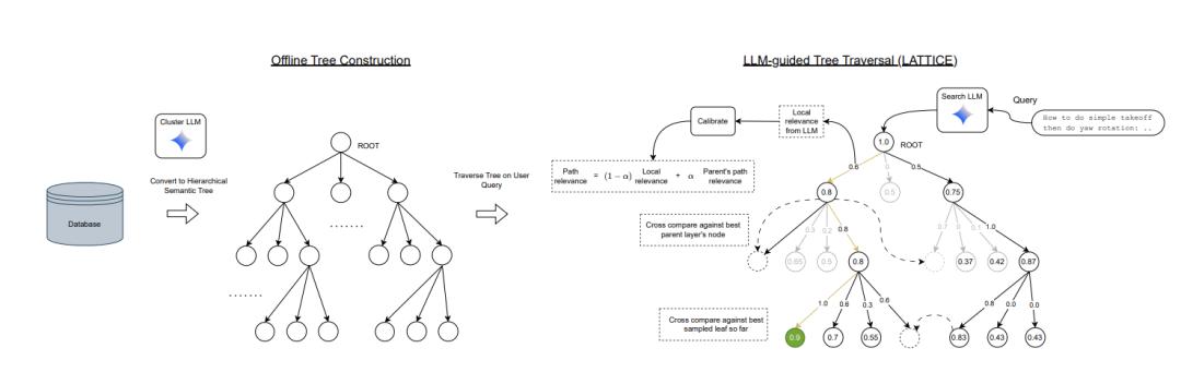 - 对数复杂度的搜索:通过将文档库组织成语义树结构,搜索复杂度降为对数级别(相对于文档数量)