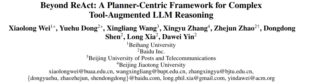 - 论文:Beyond ReAct: A Planner-Centric Framework for Complex Tool-Augmented LLM Reasoning