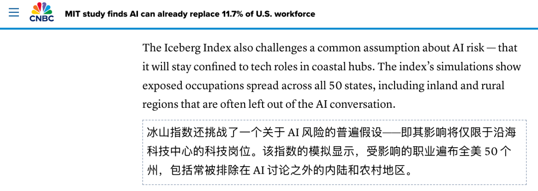 这项研究通过一个名为「冰山指数」(Iceberg Index)的模拟工具,得出了一个惊人的结论: