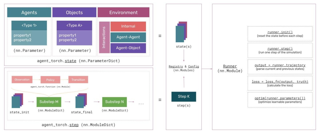 以下框图提供了AgentTorch Python API 的结构概览: