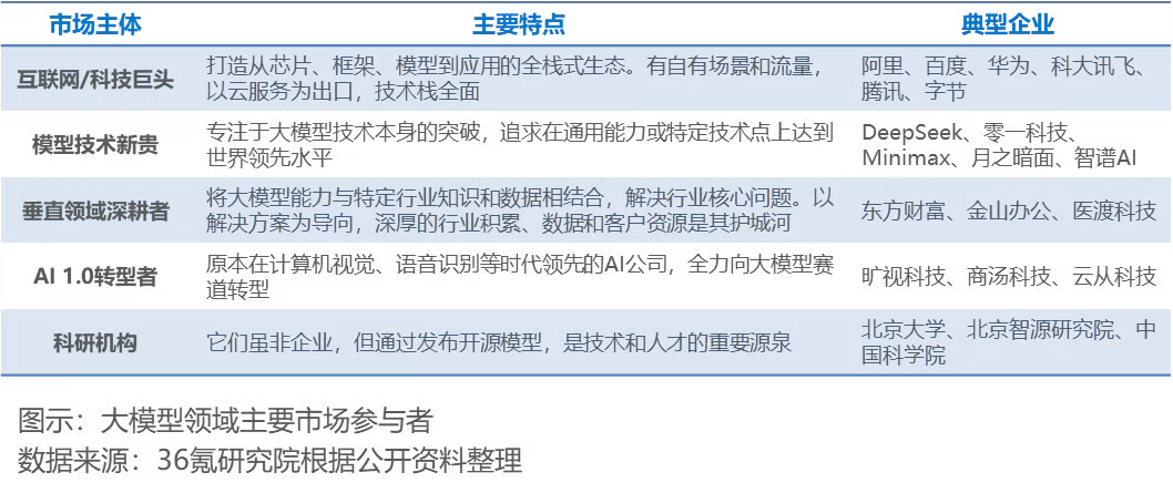 -科研机构:通过开源模型提供技术基础,是人才和创新的重要源头,但不直接参与商业竞争。